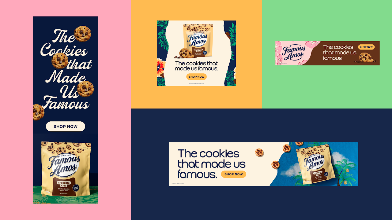 Brand Re-Launch: Following a long absence from shelves (and failed attempt at modernization), we re-launched the iconic brand with a campaign and design system worthy of its founder Wally Amos and its roots in 1970s Los Angeles.